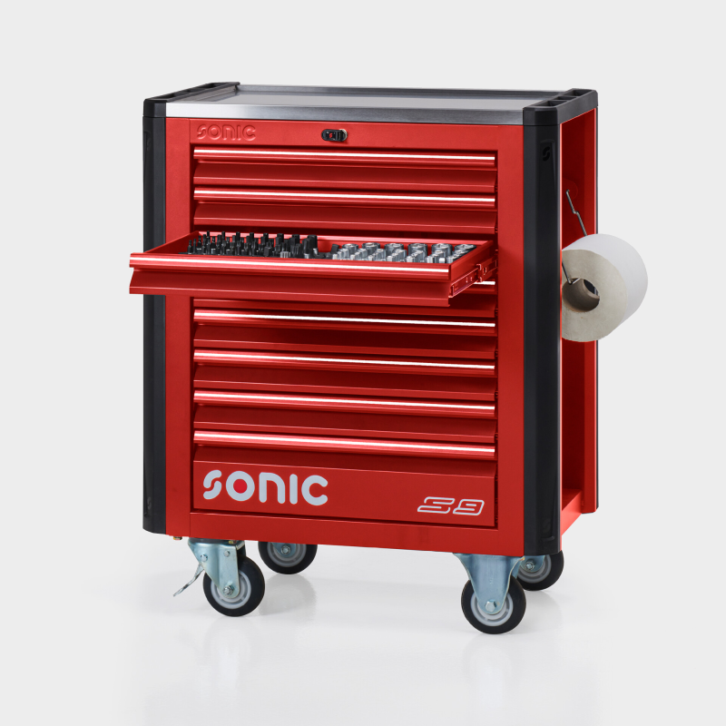 Sonic NEXT S9 tööriistakäru on soovituslik lahendus tehnikutele, kes otsivad lihtsat või kesktaseme tööriistakomplekti. See tööriistakast on enimmüüdud ja soovitatav toode mitte ainult selle kõrguse, vaid ka ruumisäästliku disaini eelis – laius vaid 83 cm ja sügavus 52 cm. See üldise suuruse ja hoiuruumi kombinatsioon teeb sellest kärust oma klassi liidri..