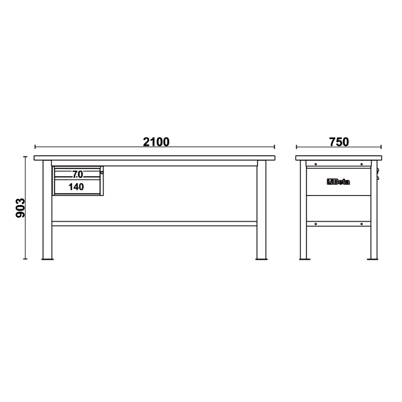 • Tööpind (2100x750 mm) mitmekihilisest puidust, paksusega 38 mm