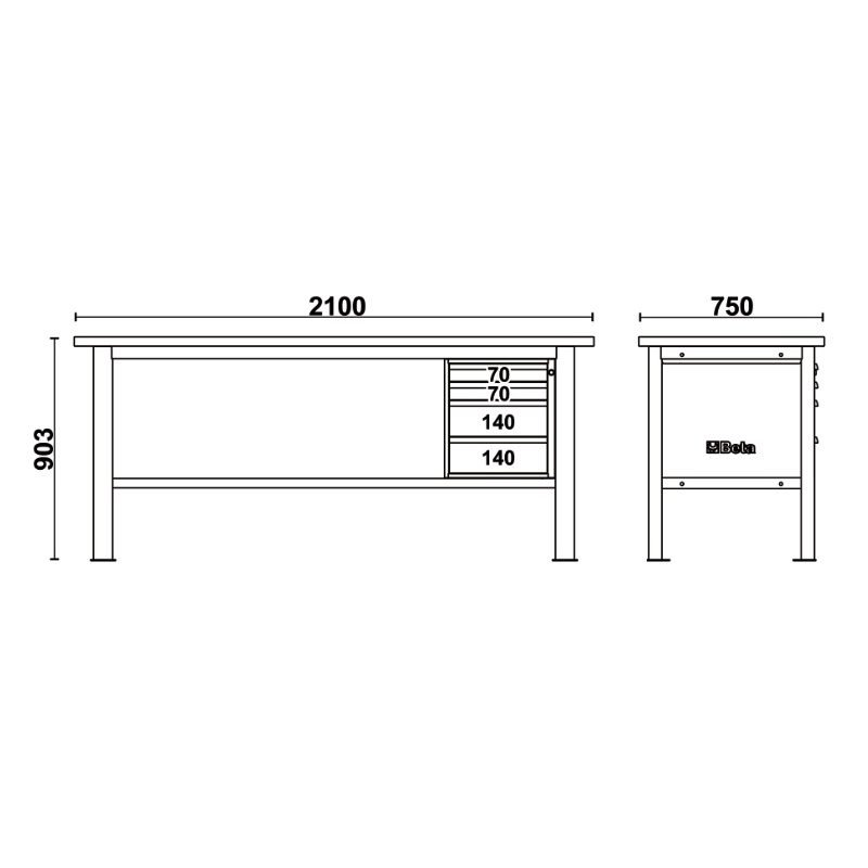 • Tööpind (2100x750 mm) mitmekihilisest puidust, paksusega 38 mm