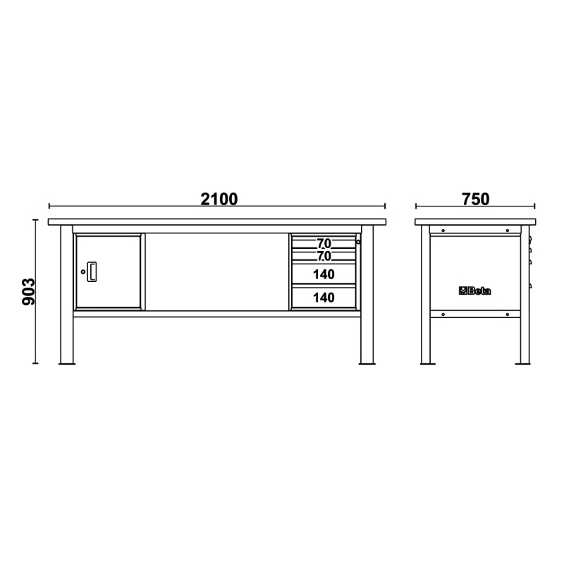 • Tööpind (2100x750 mm) mitmekihiline puit, paksusega 38 mm