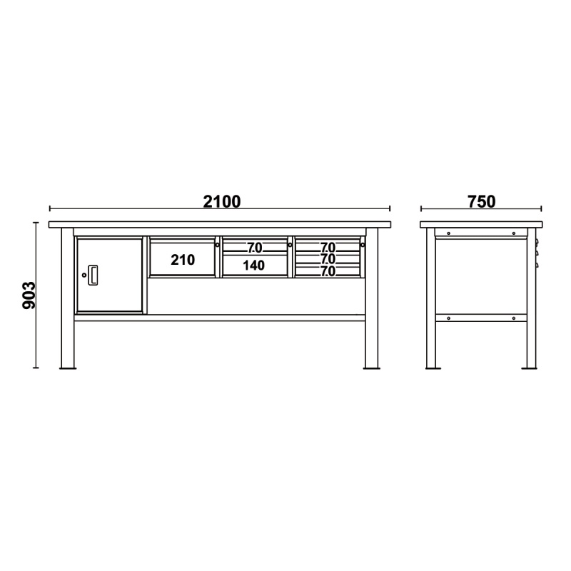 • Tööpind (2100x750 mm) mitmekihilisest puidust, paksusega 38 mm